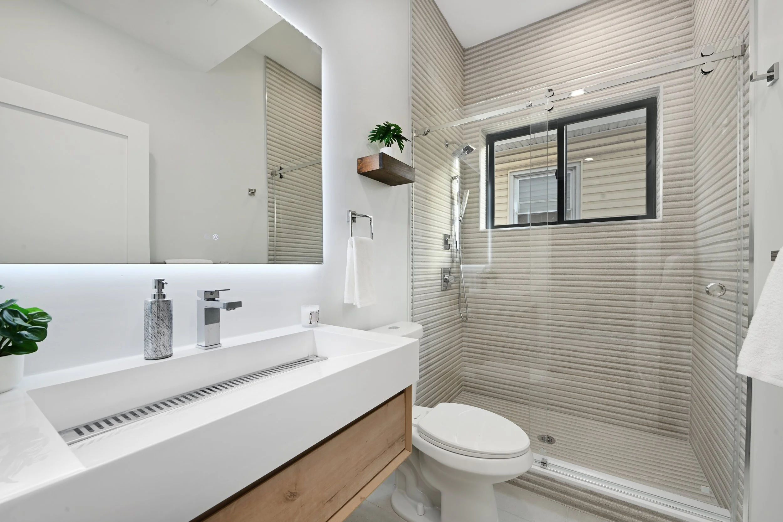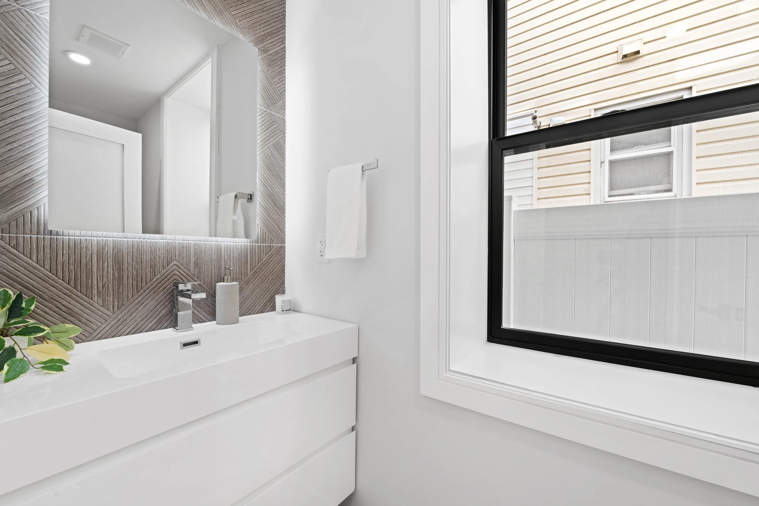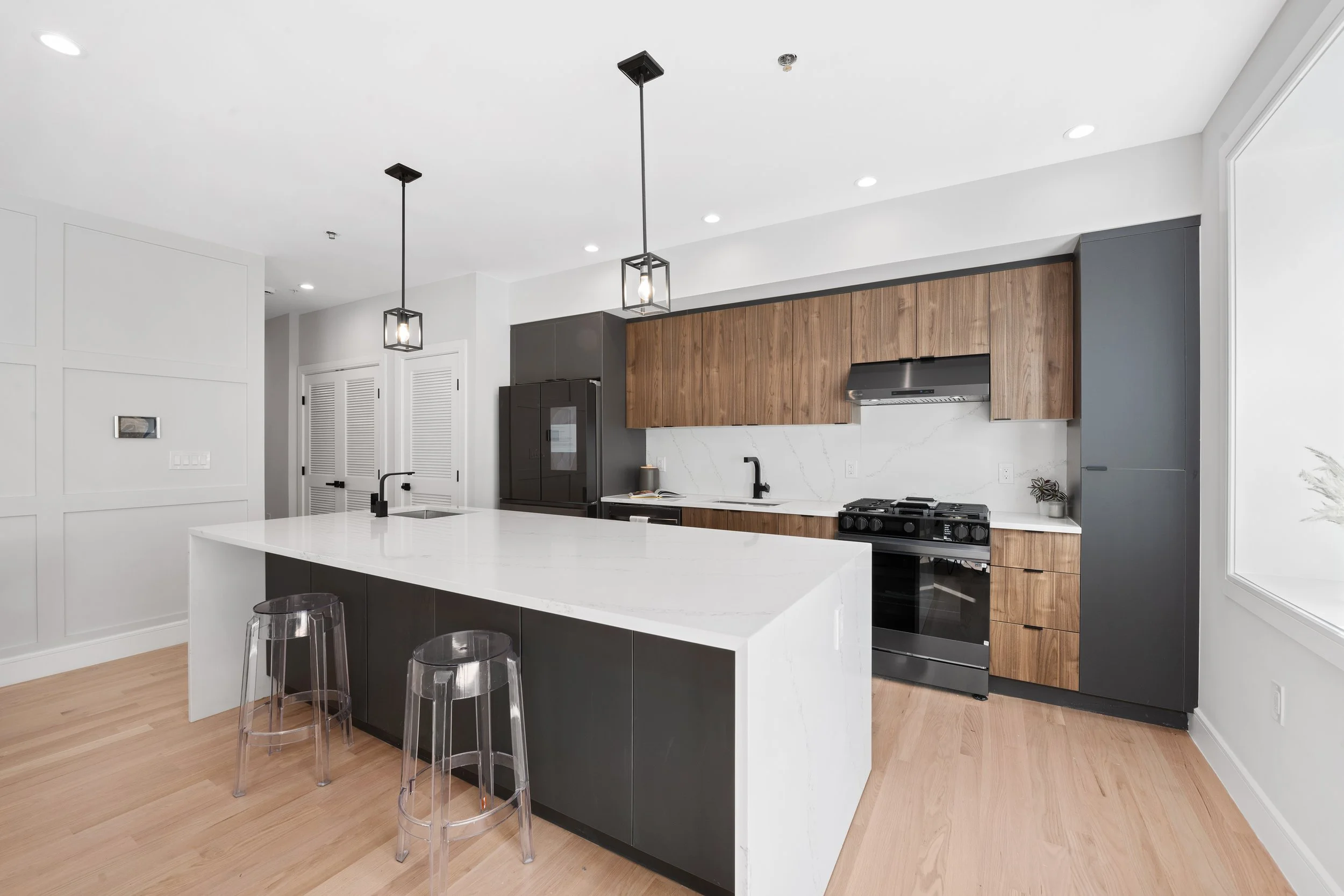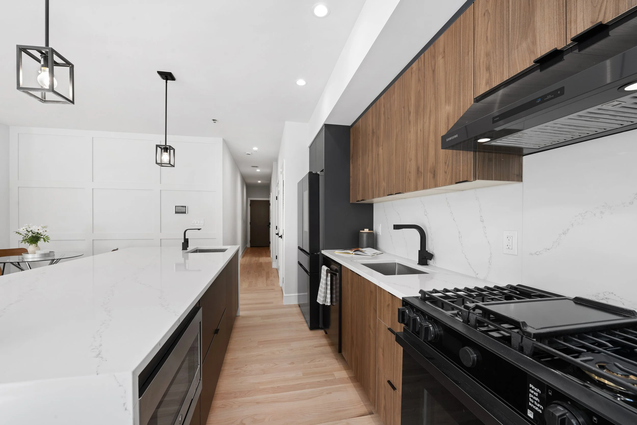Every home at 163–165 Delaware is crafted for the way people want to live today. Wide-plank oak floors, expansive windows, and smart entry systems bring both style and convenience. Kitchens are equipped with Samsung appliances, quartz countertops, and matte black hardware for a sleek, timeless look. Bathrooms feature floor-to-ceiling porcelain tile, contemporary shower panels, and spa-like design details. Select residences offer private storage, tandem garage parking, and rare outdoor spaces ranging from rooftop decks to private gardens.
